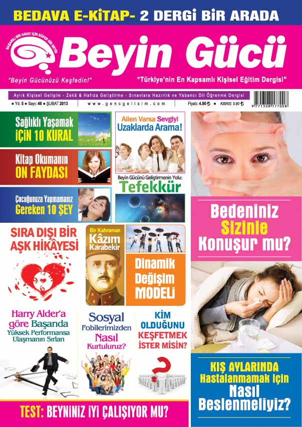 Türkiye’nin en çok okunan Kişisel Gelişim – Zekâ & Hafıza Geliştirme – Sınavlara Hazırlık ve Yabancı Dil Öğrenim Dergisi BEYİN GÜCÜ, beyninizi maksimum bir kapasitede kullanmanın yollarını göstermeye devam ediyor…
