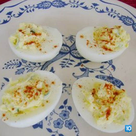 Yumurtaları haşlayın. Maydanozu çok ince doğrayın. İsterseniz içine farklı yeşilliklerde koyabilirsiniz. Haşlanan yumurtaları ikiye bölün ve sarılarını çıkartın. Sonra sarılarıyla birlikte maydanozu, baharatları ve yağı karıştırın. Son olarak bir tatlı kaşığı yardımıyla hazırlanan içleri tekrar yumurtalara doldurun. Afiyet olsun.