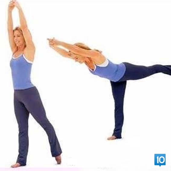 Ellerimizi birleştirip en yukarı uzanabildiğimiz kadar uzanıyoruz. Sağ bacağımızı arkaya doğru uzatırken gövdemiz öne doğru tek bacağımızın üzerinde düz bir çizgi oluşturacak şekilde 3 saniye kadar duruyoruz. Bunu yaparken dengede duramıyorsanız duvara iki elinizi koyup sadece bacağınızı arkaya doğru uzatabilirsiniz. Bacağınızı uzatınca nefes alın başlangıç pozisyonuna dönerken nefes verin.Basen ve kalçanızı sıkmalısınız aksi halde sadece yorulmuş olacaksınız.Her bir bacak için 10 toplam 20 tekrar yapmış olacağız.