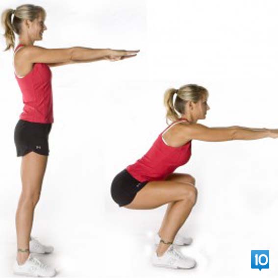 2 – Çömelirken kollarınızı omuz hizasında öne doğru uzatın